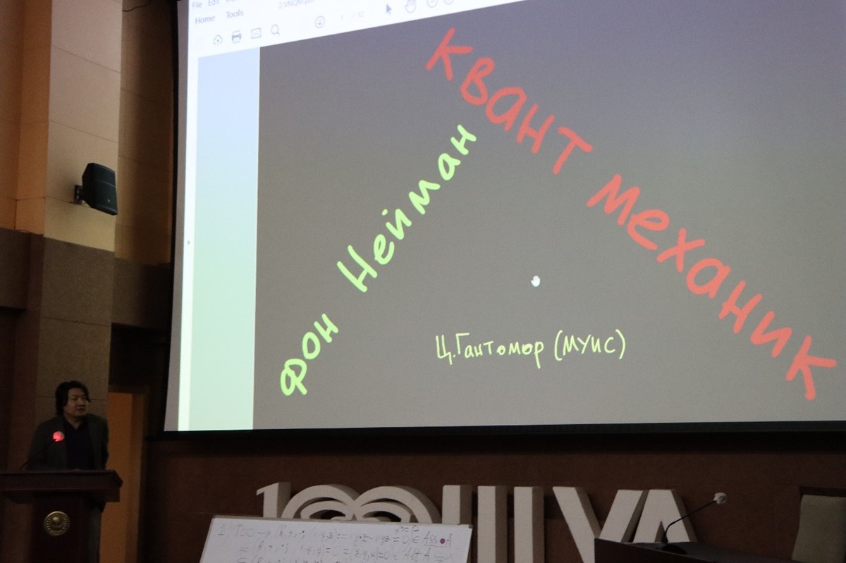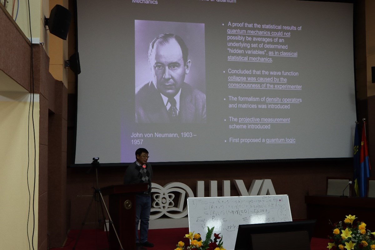 Зураг 3. Проф. Ц.Гантөмөр “Фон Нейман ба Квант механик” сэдвээр илтгэв.