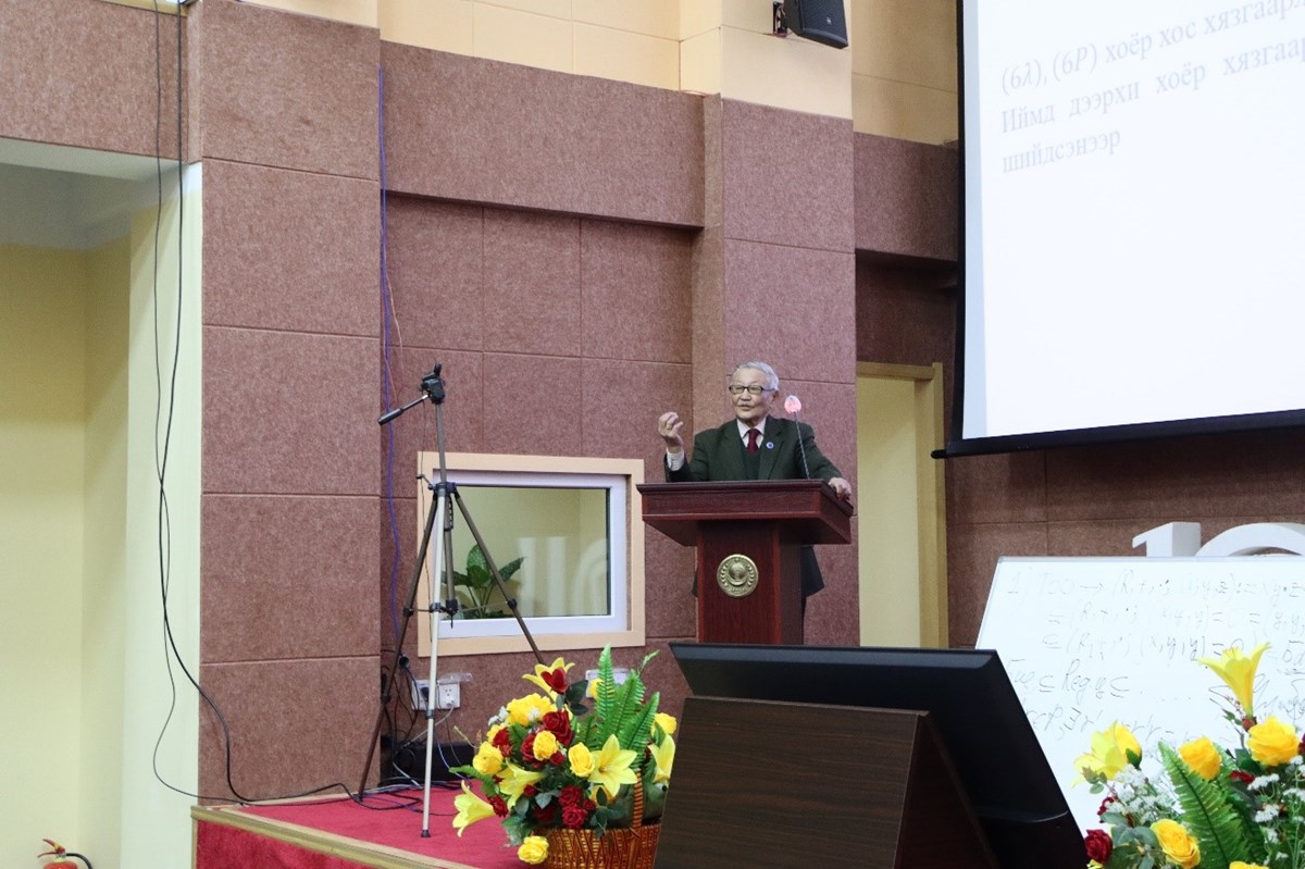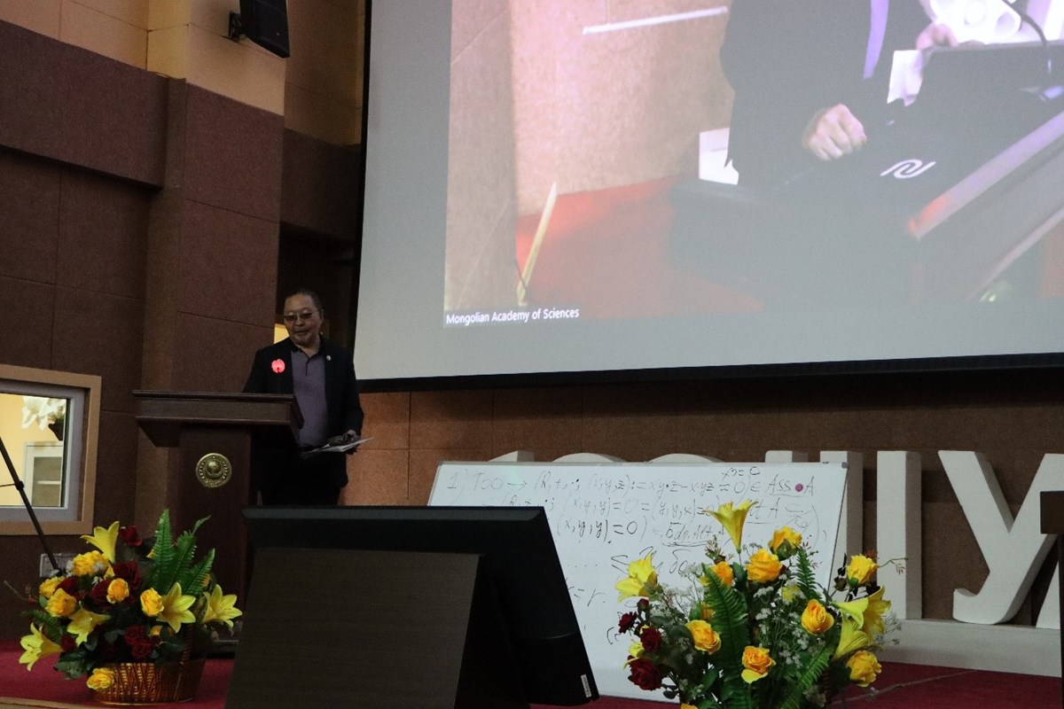 Зураг 2. Проф. Ц.Дашдорж “Фон Нейманий алгебр” сэдвээр илтгэв.