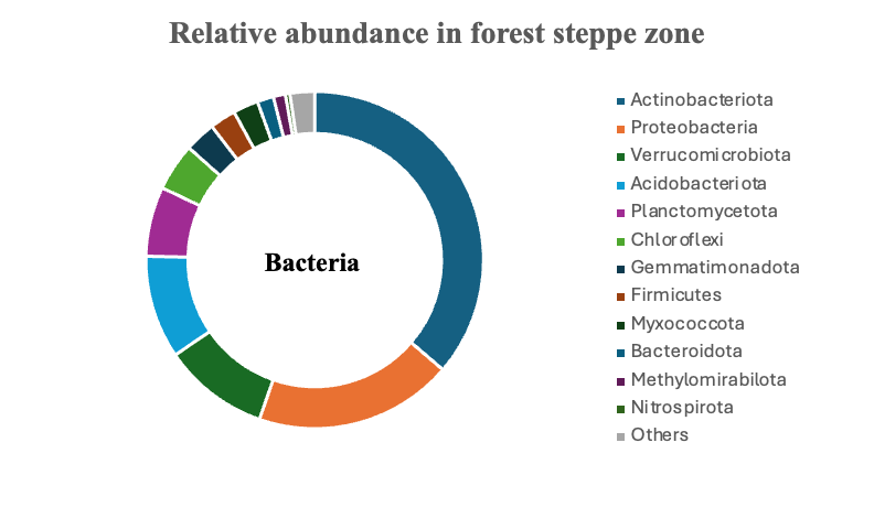 Figure 1. Relative abundance of bacterial phyla found in a soil sample collected from forest steppe zone.