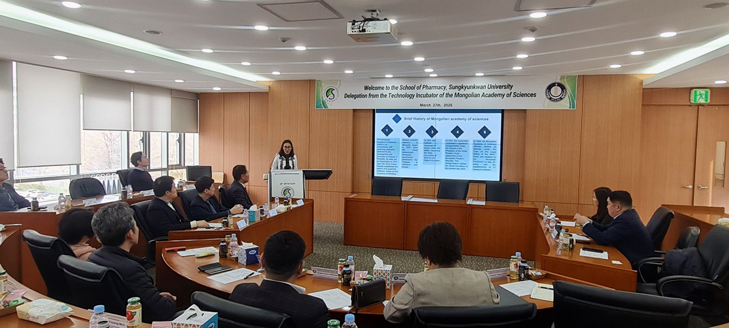 2024 онд ШУА, Бүгд найрамдах Солонгос улсын Sungkyunkwan их сургуулийн төлөөлөл ШУА-ийн Технологийн инкубаторт зочлон, хоёр тал харилцан ойлголцох санамж бичиг байгуулсан. Үүний хүрээнд Технологийн инкубаторын төлөөлөл 2025 оны 3 сарын 26-30 өдрүүдэд Sungkyunkwan их сургуулийн урилгаар тус сургууль дээр зочиллоо. Бид тус сургуулийн эрдэмтэн судлаачидтай албан уулзалт, хурал workshop зохион байгуулсан ба хамтран ажиллах чиглэлээ тодорхойлон, судлаачдын академик мэдлэг дээшлүүлэх солилцоо, инновацын бүтээгдэхүүн хөгжүүлэх, нарийн шинжилгээ хийлгэх зэргийг тохиролцон, цаашид тус сургуулийн “Эм зүйн” сургуультай хамтран ажиллах гэрээ байгуулан ажиллахаар боллоо.