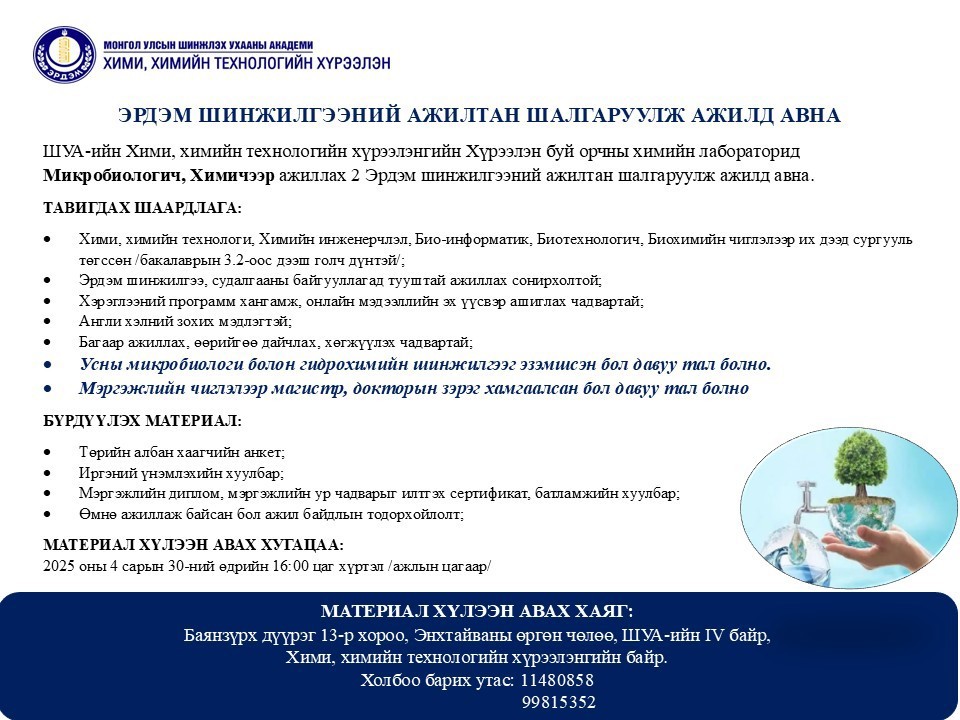 Эрдэм шинжилгээний ажилтан шалгаруулж авна