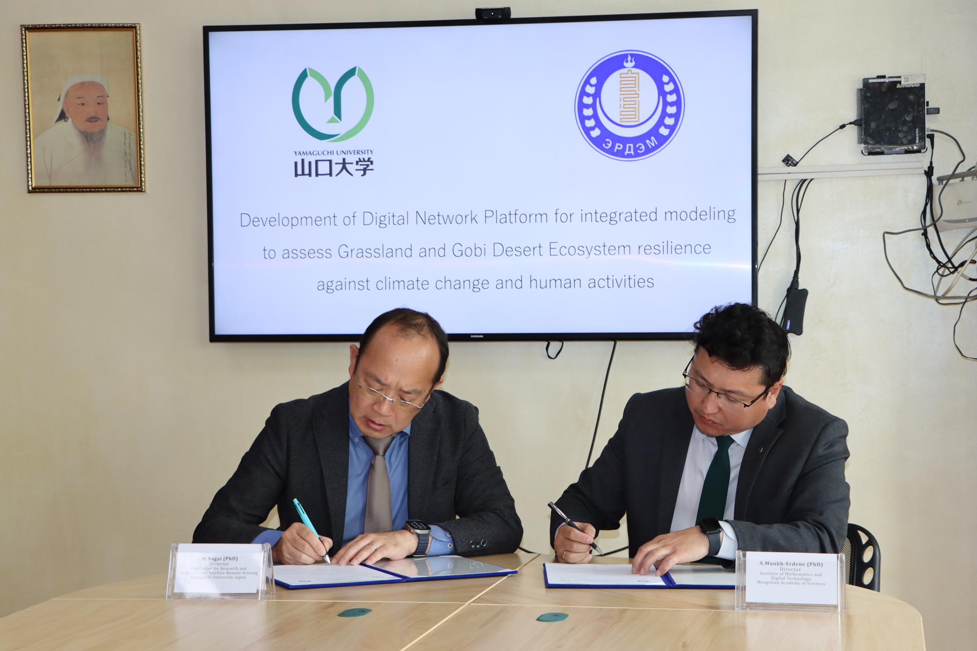 ШУА-ийн Математик, тоон технологийн хүрээлэнгийн захирал А.Мөнх-Эрдэнэ, Япон улсын Ямагучи их сургуулийн Хиймэл дагуулын зайнаас тандан судлалын төвийн захирал профессор М.Нагай нар хамтын ажиллагааны санамж бичигт гарын үсэг 2025 оны 6-р сарын 9-ны өдөр зурлаа. Эдгээр байгууллагууд нь тогтвортой хөгжлийн төлөөх шинжлэх ухаан, технологийн хамтарсан судалгааны (SATREPS) хөтөлбөрийг хамтран хэрэгжүүлэхээр болсон ба хамтын ажиллагааны санамж бичигт эрдэм шинжилгээний судалгаа, хүний нөөцийг чадавхжуулах зэргээр хамтын ажиллагааг хөгжүүлэх юм.