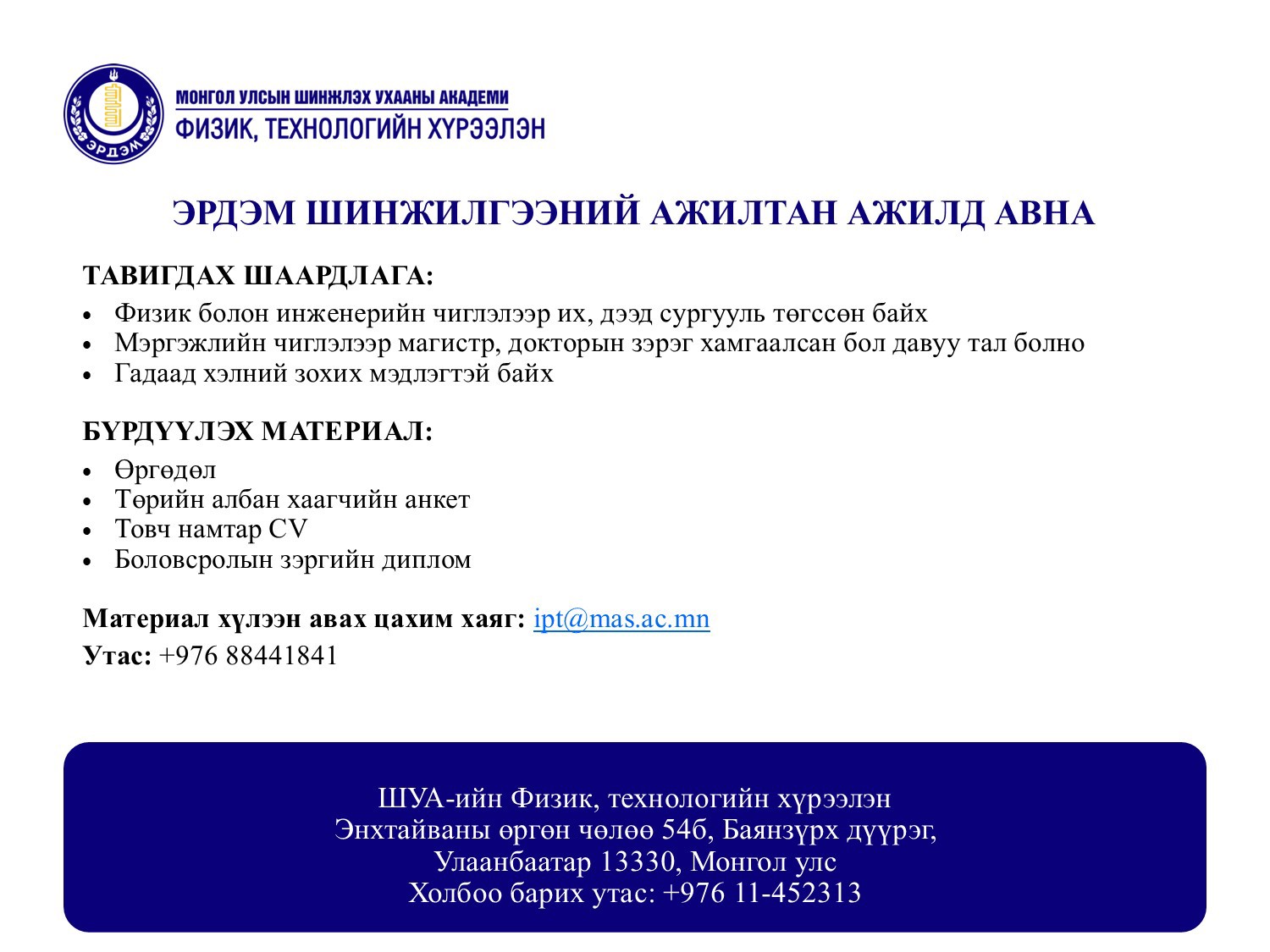 ЭРДЭМ ШИНЖИЛГЭЭНИЙ АЖИЛТАН СОНГОН ШАЛГАРУУЛЖ АВНА