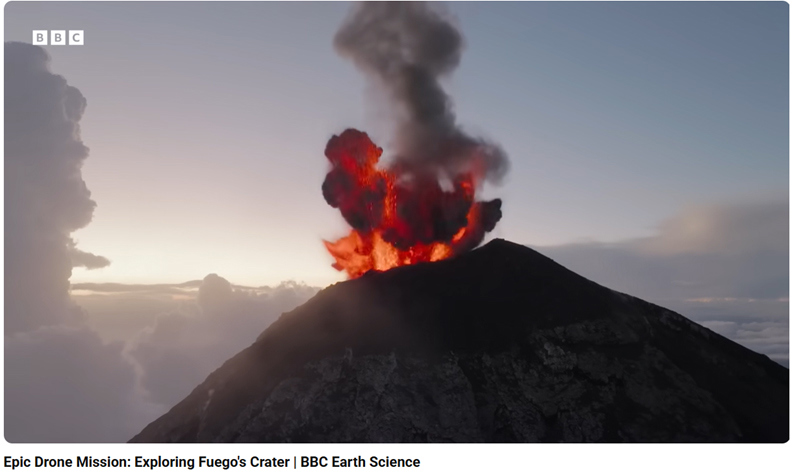 Зураг 1. Гватема л улсын идэвхтэй “Volcán de Fuego” галт уулыг дроноор ажиглан, хэмжилт хийж буй эрдэмтдийн багийн судалгааны явцын зураглал
