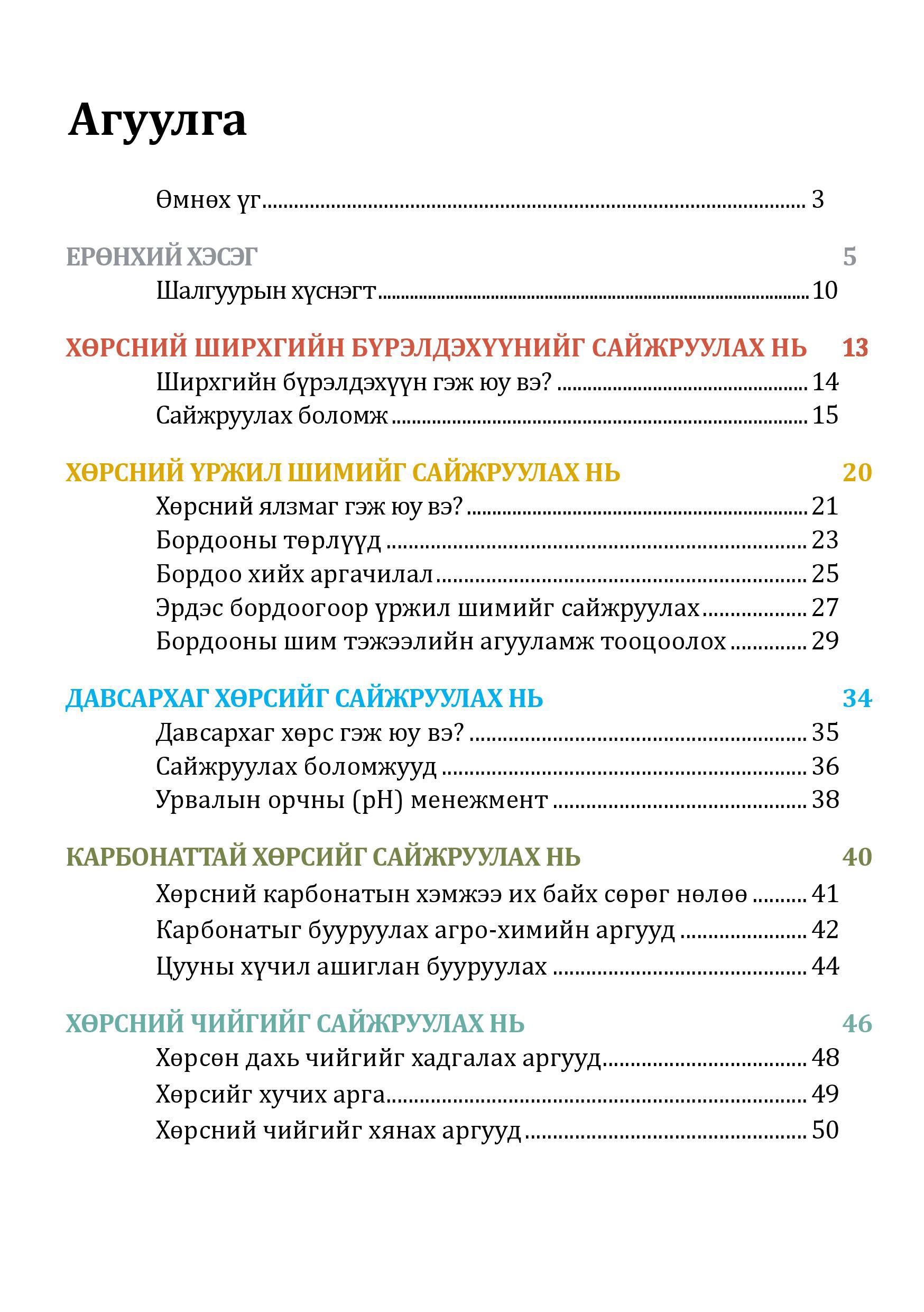 Энэхүү гарын авлага нь шинж чанарын доройтолд орсон хөрсийг сайжруулахтай холбоотой асуудлыг шийдвэрлэхэд тодорхой хэмжээгээр ашиглагдана гэдэгт найдаж байна.