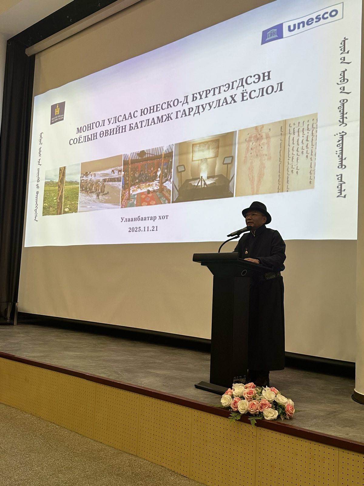 Монгол бахархлын өдрөөр өвөг дээдсээс уламжлагдан ирсэн монгол өв соёл, түүний дотроос анагаах ухааны сурвалж бичгийн өвийг олж тогтоон, нарийвчлан судалж, ЮНЕСКО-гийн Дэлхийн дурсамж хөтөлбөрийн олон улсын жагсаалтад анх удаа анагаах ухааны эртний номыг Монгол Улсаас бүртгүүлсэн батламжийг гардуулах ёслолын үйл ажиллагаа зэрэгцэн тохиож байгаа нь бас нэгэн бахархал болж байна.