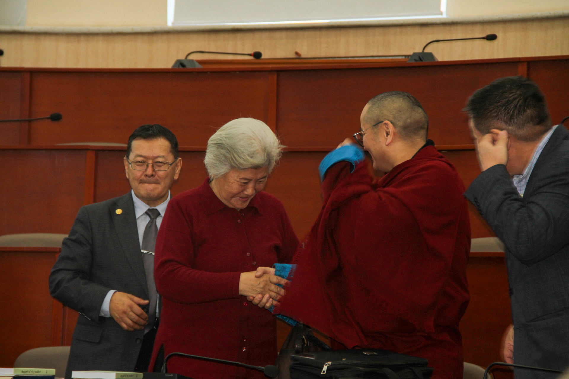 Мөн Академич Г.Лувсанцэрэнгийн нэрэмжит тэтгэлгийг шашин судлал, буддын судлалын чиглэлээр амжилттай суралцаж, сурлагын амжилт болон тэнхимийн үйл ажиллагаанд идэвхтэй оролцсон оюутнуудад 17 жилийн турш олгож ирсэн уламжлалын дагуу энэ жил Шашин судлалын II түвшний оюутан Э.Сосорбарам, IV түвшний оюутан М.Анундарь нарт гардууллаа.