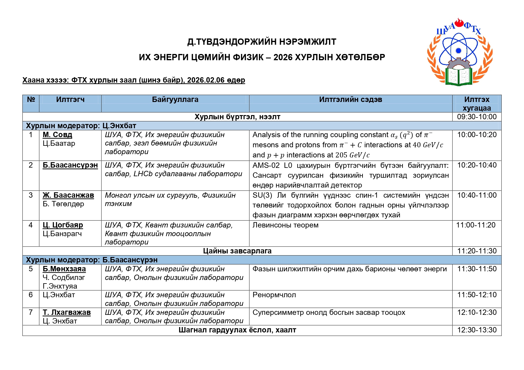ИХ ЭНЕРГИ ЦӨМИЙН ФИЗИК - 2026